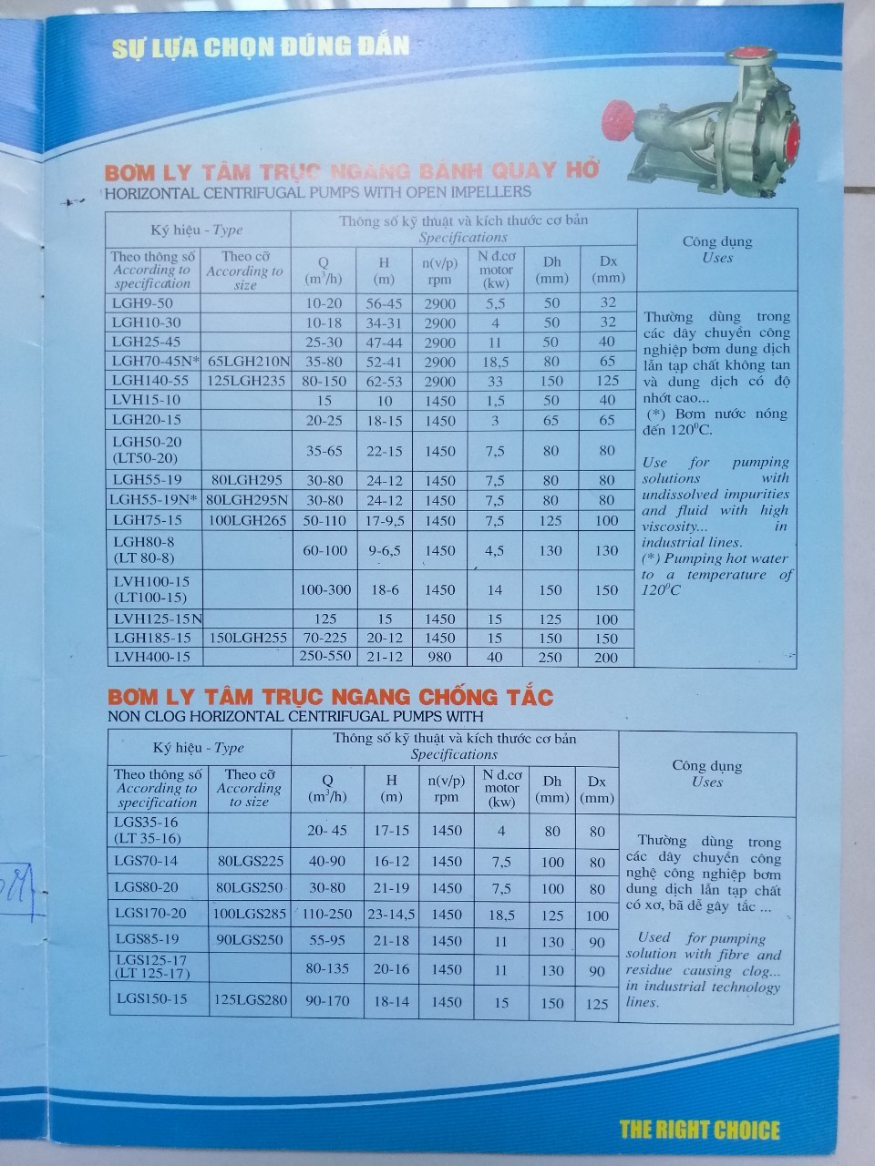 – Thường dùng trong các dây chuyền công nghiệp bơm dung dịch lẫn tạp chất không tan và dung dịch có độ nhớt cao….